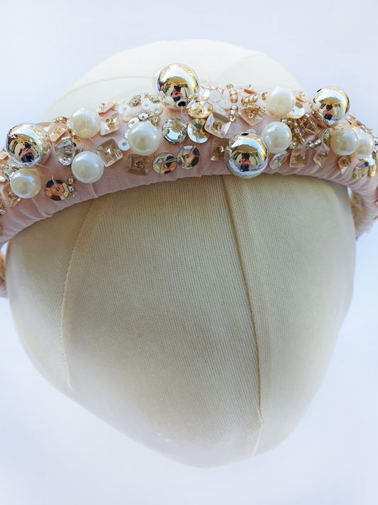 Elegant Hand-Embroidered Pearl and Swarovski Diadem